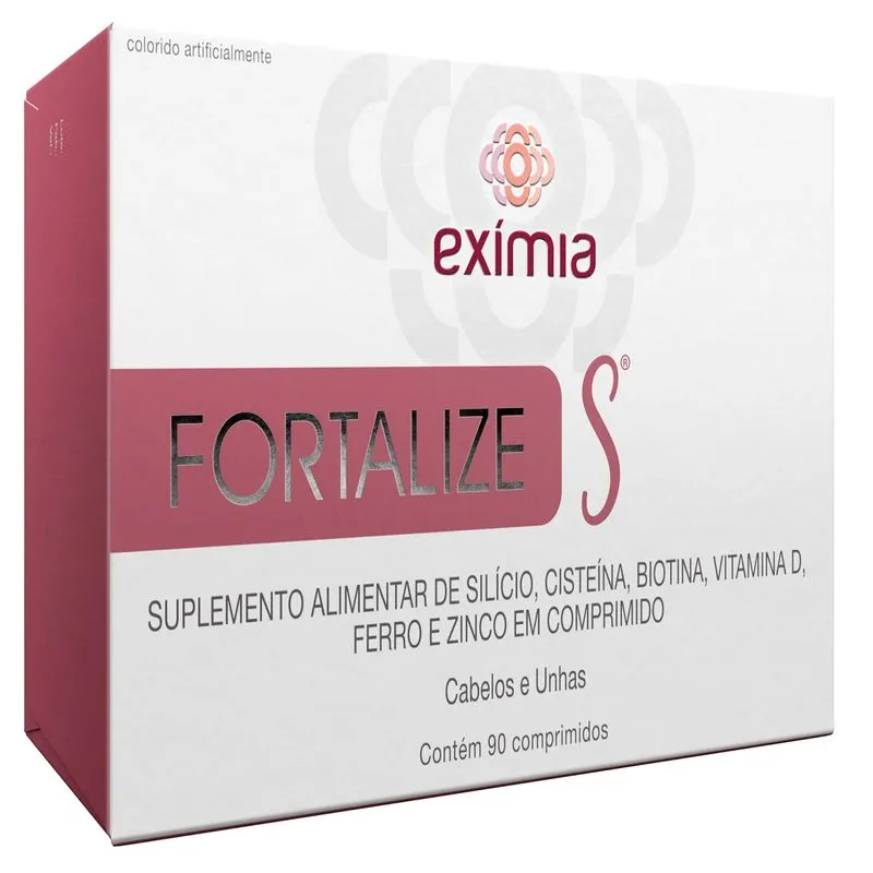 Eximia Fortalize S com 90 comprimidos é um suplemento alimentar que contém Cisteína, Biotina, Vitamina d, Ferro e Zinco, que juntos ajudam no fortalecimento de cabelos e unhas, auxiliando também em um crescimento forte e saudável. Eximia Fortalize S com 90 comprimidos não é recomendado para pessoas que apresentem qualquer tipo de alergia aos componentes da fórmula.